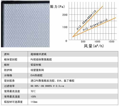6、過濾效率:H13:99.97-99.99%@0.3μm H14:99.995-99.999%@0.3μm 。