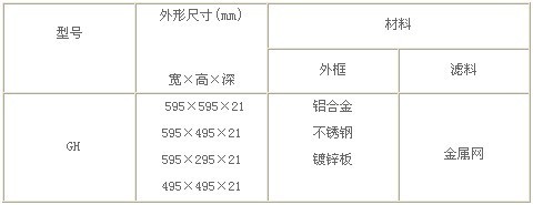GH金屬孔網初效過濾器型號尺寸及其它參數: