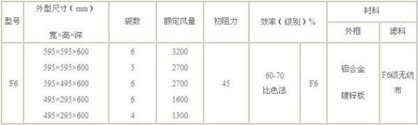 注:F6級中效袋式過濾器在中效過濾器中要比F5級中效袋式過濾器高一個級別。