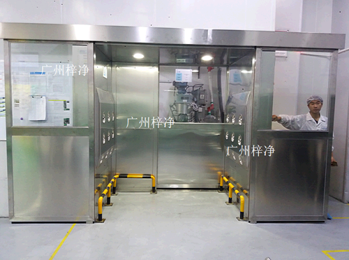 貨淋室經過高效過濾器過濾后的潔凈氣流由可旋轉噴嘴從各個方向噴射至物體表面,有效而迅速清除塵埃粒子,帶有塵埃粒子的空氣再由初、高效過濾器過濾后重新循環到貨淋區域。貨淋室的兩道門電子互鎖,可以兼起氣閘室的作用,防未被凈化的空氣進入潔凈室,高科技智能語音貨淋室帶有語音提示系統,在吹淋時由自動語音系統提示,人性化語音提示給人一種親切感覺,并達到有效的凈化效果。