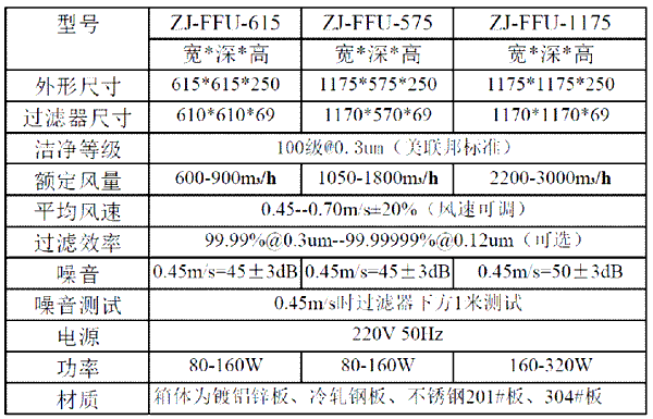 FFU凈化單元規(guī)格尺寸及型號參數(shù):