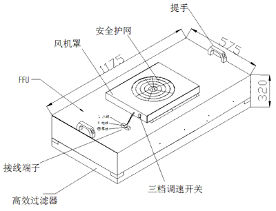 FFU凈化單元是一種自帶動力、具有過濾功效的模塊化的末端送風裝置。風機從FU頂部將空氣吸入并經(jīng)HEPA過濾,過濾后的潔凈空氣在整個出風面以0.45m/s±20%的風速均勻送出。